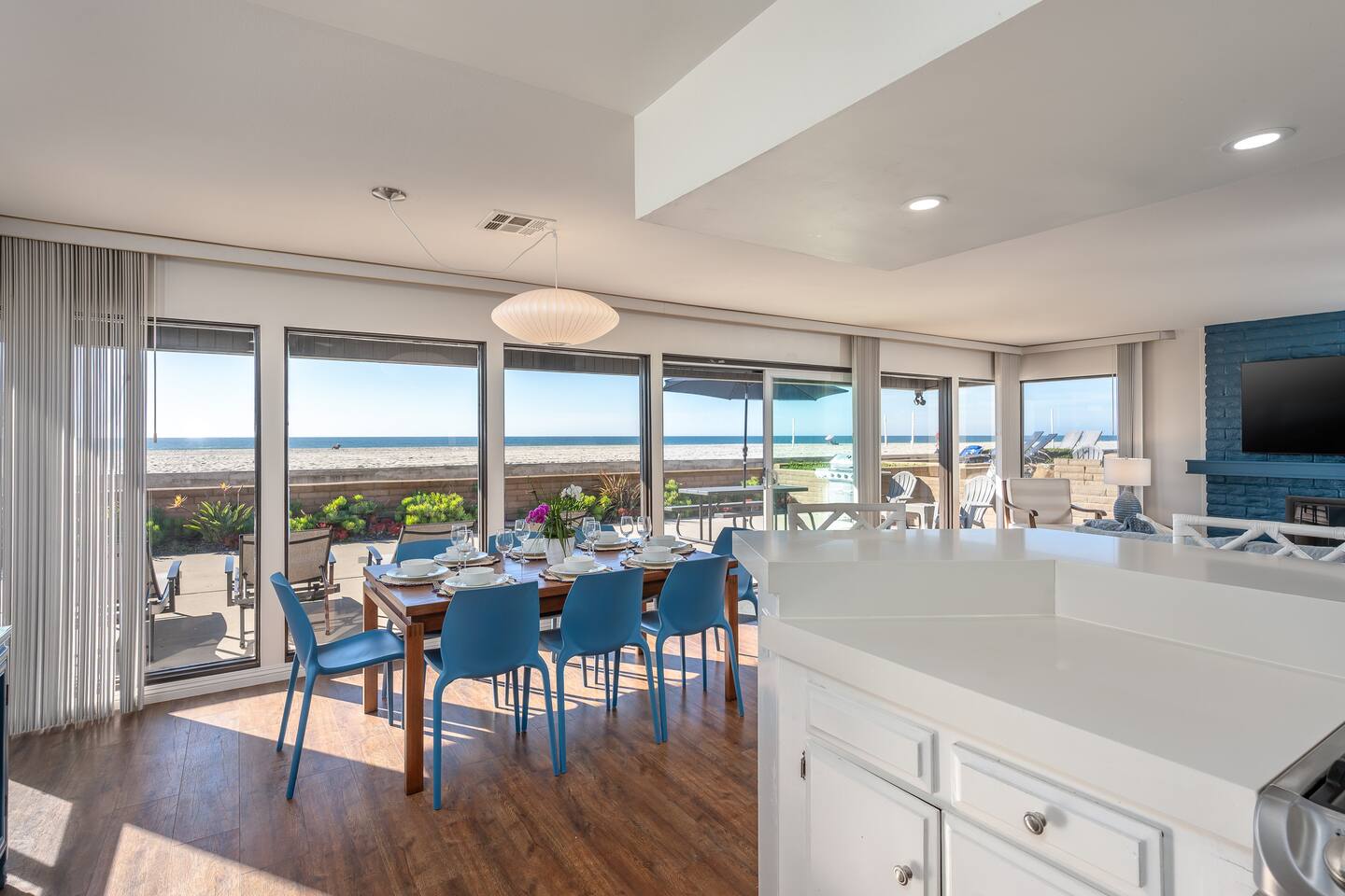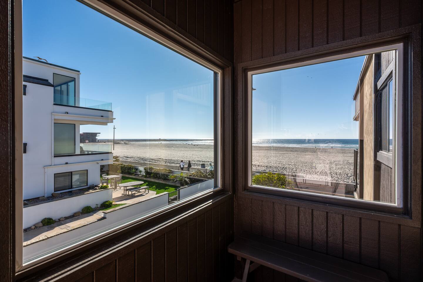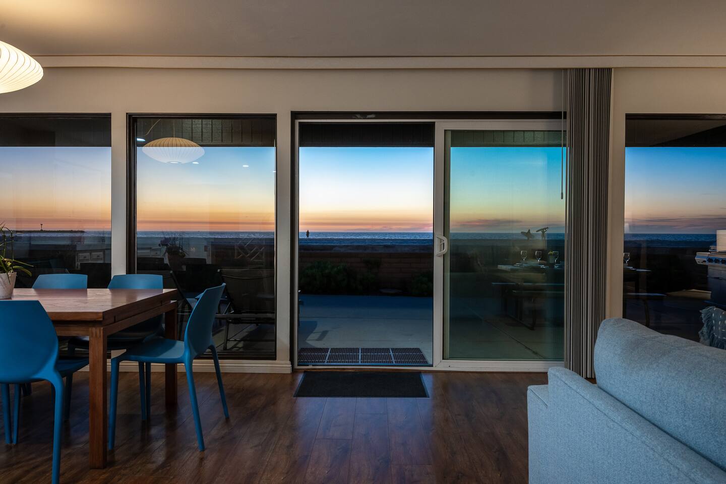 Classic coastal character meets modern comfort with air conditioning in both homes. The ground floor residence opens directly to a large beachfront patio just steps from the sand, while the second floor home offers elevated privacy and sweeping ocean views from its balcony. Together, the two homes provide an ideal setup for large families, multi family vacations, or group retreats who want to stay together while still enjoying separate living spaces. The two residences are located on separate floors of the same oceanfront duplex and do not connect internally. Walk to the Mission Beach Jetty, cross the strand to Mission Bay, or explore Pacific Beach dining just minutes away. Designed for relaxed gatherings and memorable beachfront stays. TOP HIGHLIGHTS * Entire oceanfront duplex on the Mission Beach Boardwalk * Two separate 3 bedroom beachfront residences * Air conditioning in both homes which is rare for beachfront properties * Expansive beachfront patio plus private ocean view balcony * 6 dedicated off street parking spaces * Ideal setup for large families or group trips BEDROOMS | Sleeps 12 Each residence features the same layout. Ground Floor Residence * Primary Suite: King bed, private ensuite bath, 44 inch Samsung TV with Apple TV * Bedroom 2: King bed * Bedroom 3: Two twin beds Second Floor Residence * Primary Suite: King bed, private ensuite bath, 44 inch Samsung TV with Apple TV * Bedroom 2: King bed * Bedroom 3: Two twin beds BATHROOMS | 4 Full Each residence includes two bathrooms. Per Residence * Primary ensuite with tub and shower combo * Hall bathroom with walk in shower * Fresh towels and essentials provided KITCHENS AND DINING Both homes feature fully equipped kitchens with cookware, dishware, and small appliances including coffee makers. Each residence includes its own dining space for shared meals after beach days. LIVING AREAS Each residence includes a separate living room designed for comfort and ocean views. * 65 inch Samsung Smart TV with Apple TV * Comfortable seating with direct ocean views Ground Floor Residence Seamless indoor outdoor flow to the beachfront patio. Second Floor Residence Elevated vantage point above the boardwalk with expansive ocean views. OUTDOOR SPACES Guests enjoy multiple outdoor areas directly on the oceanfront boardwalk. Ground Floor * Large beachfront patio just steps from the sand * Ideal for outdoor dining and relaxing Second Floor * Private balcony with comfortable seating and ocean views Shared * Beachfront BBQ grill * Direct access to the boardwalk and beach COMFORT AND CONVENIENCE * Air conditioning in both homes * Two in home washers and dryers * High speed Wi Fi * 6 dedicated parking spaces located directly behind the property Parking is extremely rare in Mission Beach, making this property especially convenient for larger groups. LOCATION | South Mission Beach Located on the quieter south end of Mission Beach, this home sits directly on the boardwalk while being slightly removed from the busiest stretch near Belmont Park. * 10 minute walk to Belmont Park and beachfront dining * 5 minute walk to the Mission Beach Jetty * Easy access to Mission Bay beaches and bike paths * 10 minutes to SeaWorld * 20 minutes to the San Diego Zoo * 45 minutes to LEGOLAND California