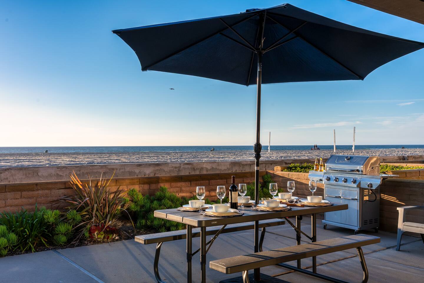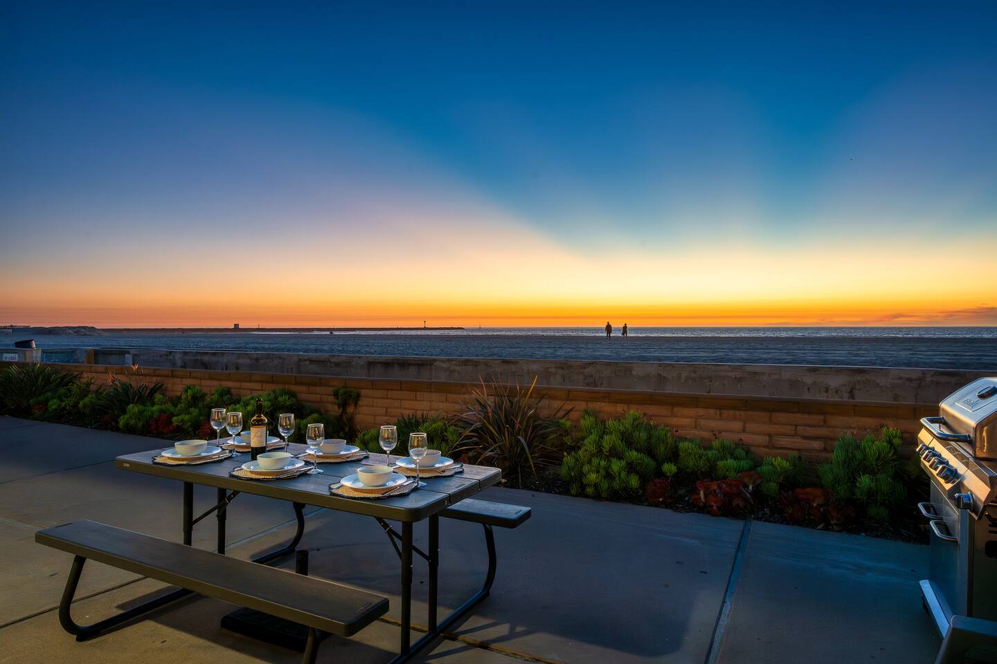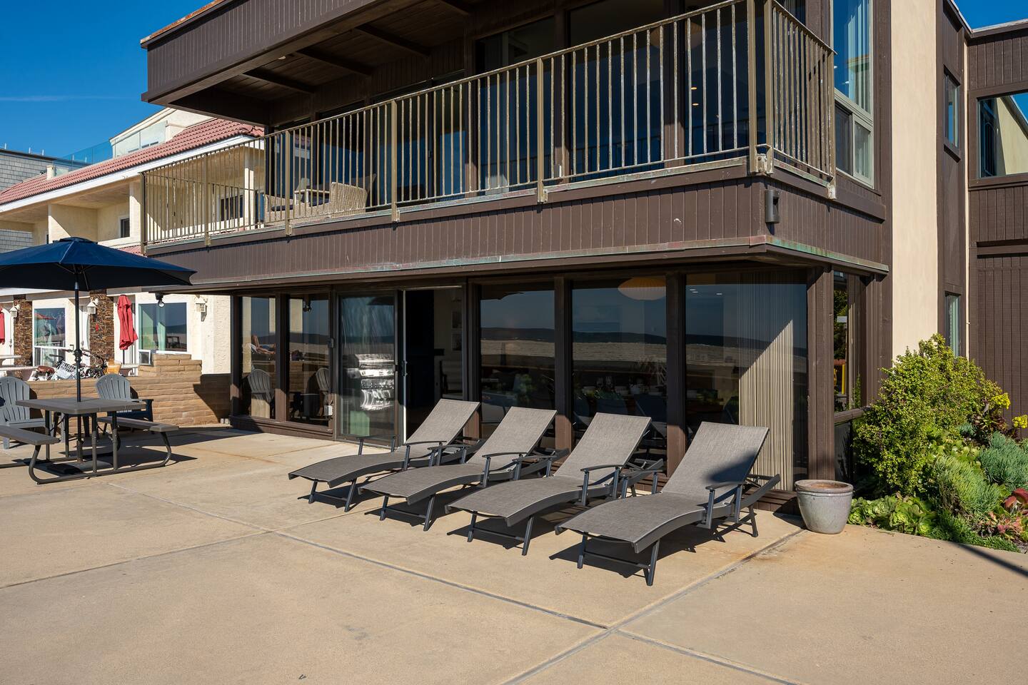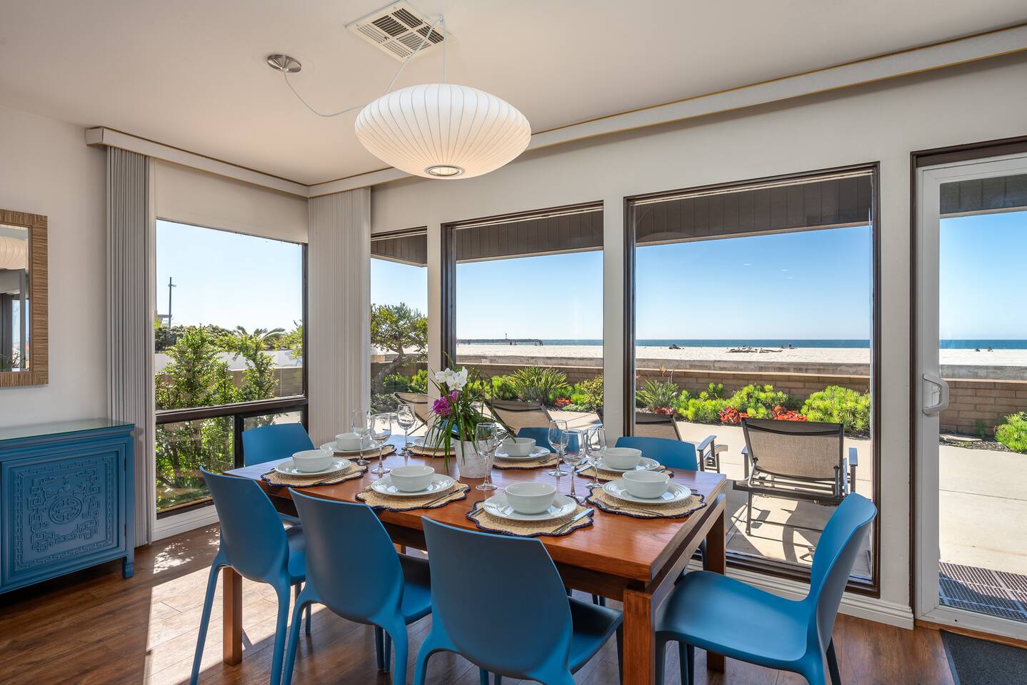 Classic coastal character meets modern comfort with air conditioning in both homes. The ground floor residence opens directly to a large beachfront patio just steps from the sand, while the second floor home offers elevated privacy and sweeping ocean views from its balcony. Together, the two homes provide an ideal setup for large families, multi family vacations, or group retreats who want to stay together while still enjoying separate living spaces. The two residences are located on separate floors of the same oceanfront duplex and do not connect internally. Walk to the Mission Beach Jetty, cross the strand to Mission Bay, or explore Pacific Beach dining just minutes away. Designed for relaxed gatherings and memorable beachfront stays. TOP HIGHLIGHTS * Entire oceanfront duplex on the Mission Beach Boardwalk * Two separate 3 bedroom beachfront residences * Air conditioning in both homes which is rare for beachfront properties * Expansive beachfront patio plus private ocean view balcony * 6 dedicated off street parking spaces * Ideal setup for large families or group trips BEDROOMS | Sleeps 12 Each residence features the same layout. Ground Floor Residence * Primary Suite: King bed, private ensuite bath, 44 inch Samsung TV with Apple TV * Bedroom 2: King bed * Bedroom 3: Two twin beds Second Floor Residence * Primary Suite: King bed, private ensuite bath, 44 inch Samsung TV with Apple TV * Bedroom 2: King bed * Bedroom 3: Two twin beds BATHROOMS | 4 Full Each residence includes two bathrooms. Per Residence * Primary ensuite with tub and shower combo * Hall bathroom with walk in shower * Fresh towels and essentials provided KITCHENS AND DINING Both homes feature fully equipped kitchens with cookware, dishware, and small appliances including coffee makers. Each residence includes its own dining space for shared meals after beach days. LIVING AREAS Each residence includes a separate living room designed for comfort and ocean views. * 65 inch Samsung Smart TV with Apple TV * Comfortable seating with direct ocean views Ground Floor Residence Seamless indoor outdoor flow to the beachfront patio. Second Floor Residence Elevated vantage point above the boardwalk with expansive ocean views. OUTDOOR SPACES Guests enjoy multiple outdoor areas directly on the oceanfront boardwalk. Ground Floor * Large beachfront patio just steps from the sand * Ideal for outdoor dining and relaxing Second Floor * Private balcony with comfortable seating and ocean views Shared * Beachfront BBQ grill * Direct access to the boardwalk and beach COMFORT AND CONVENIENCE * Air conditioning in both homes * Two in home washers and dryers * High speed Wi Fi * 6 dedicated parking spaces located directly behind the property Parking is extremely rare in Mission Beach, making this property especially convenient for larger groups. LOCATION | South Mission Beach Located on the quieter south end of Mission Beach, this home sits directly on the boardwalk while being slightly removed from the busiest stretch near Belmont Park. * 10 minute walk to Belmont Park and beachfront dining * 5 minute walk to the Mission Beach Jetty * Easy access to Mission Bay beaches and bike paths * 10 minutes to SeaWorld * 20 minutes to the San Diego Zoo * 45 minutes to LEGOLAND California