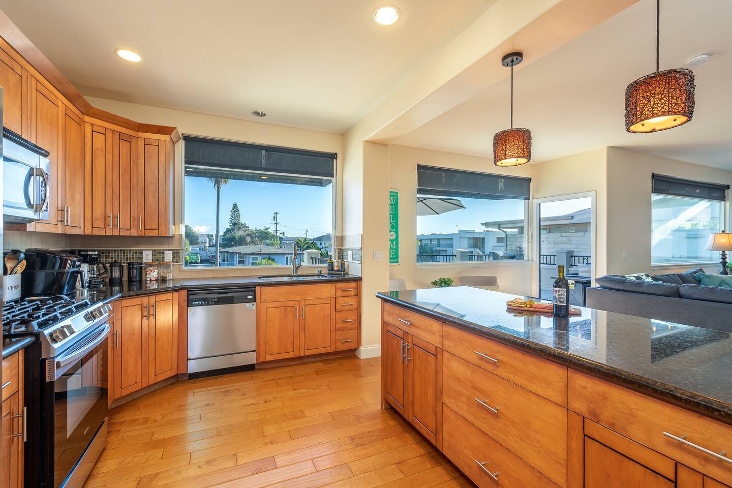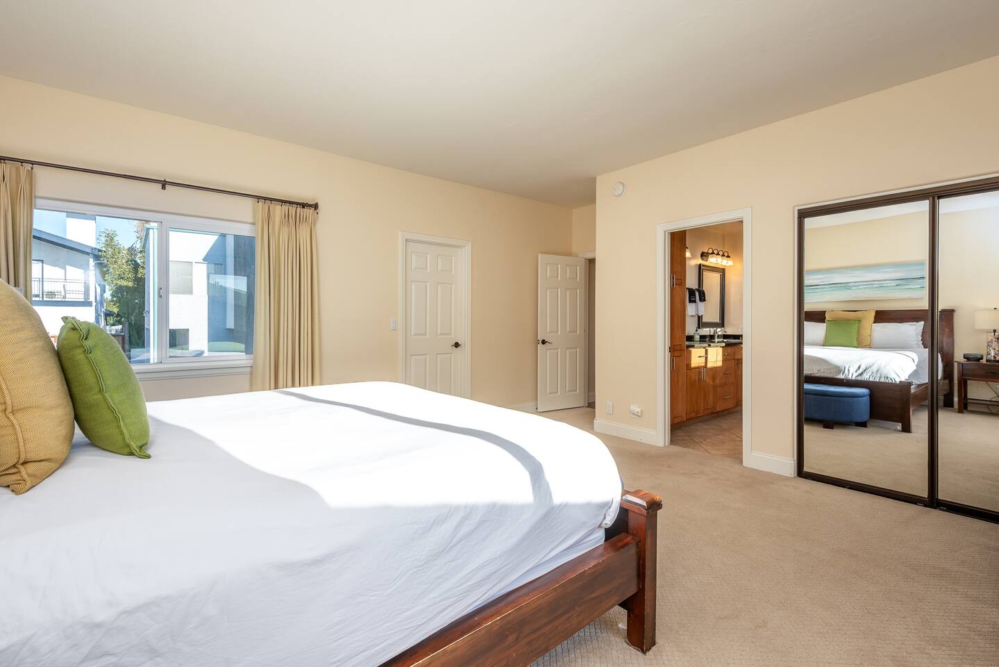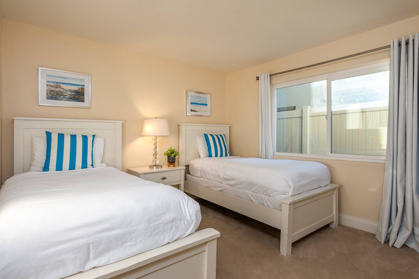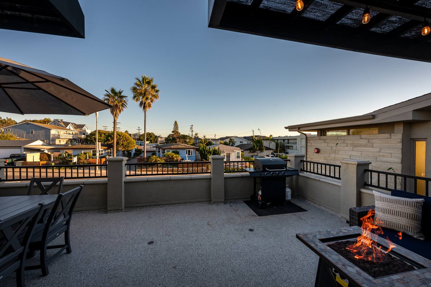 KEY FEATURES: ☀️ Prime Location – Just steps from the beach, perfect for enjoying sun, surf, and ocean breezes ☀️ Sleeps 8 | 4 Bedrooms: Master Bedroom with king bed, ensuite spa-style bathroom; Bedroom 2 king bed with private patio; Bedroom 3 queen bed; Bedroom 4 two twin beds ☀️ 3 Full Bathrooms – Master ensuite: double sinks, jacuzzi spa tub, walk-in shower; hallway full bathroom: tub/shower combo; main-floor full bathroom: tub/shower combo ☀️ Fully Equipped Kitchen – Full kitchen with bar seating for 3, coffee maker (coffee, creamer, sugar provided), blender, air fryer, toaster, stove, microwave, refrigerator, oven, dishwasher, and all cooking essentials ☀️ Dining Areas – Second-floor dining table seats 8 ☀️ Multiple Living Spaces – Second-floor living room with L-shaped sofa, fireplace, and Smart TV with soundbar; First-floor living room with large sofa, fireplace, mini-fridge, flat-screen Smart TV, and board games for added entertainment ☀️ Central A/C & Heating — for year-round comfort ☀️ Washer & Dryer — In-unit laundry for your convenience ☀️ Family Friendly – Beach towels, toys, wagon, boogie boards, chairs, and drying rack provided ☀️ Backyard Patio – Features a jacuzzi tub, chairs for relaxing and unwinding ☀️ Upstairs Deck– Equipped with a grill, large L-shaped sofa, dining table for 6, and umbrella for shaded outdoor dining ☀️ Parking – 4 driveway spaces + additional street parking ✨ BEDROOMS ✨ This two-level home comfortably sleeps up to 8 guests in 4 thoughtfully designed bedrooms: Master Bedroom (Upstairs) features a king-size bed, dresser, large closet, standing fan, and an ensuite bathroom with double sinks, a jacuzzi spa tub, and a walk-in shower, Bedroom 2 features a king-size bed, a small patio, a cabinet, and a desk with a chair ideal for remote work or leisure, Bedroom 3 (First Floor) features a queen bed and a closet, Bedroom 4 features two twin beds and a closet ✨ BATHROOMS ✨ There are three full bathrooms throughout the home. The ensuite bathroom features a jacuzzi tub and standing shower, Bathroom 2 includes a shower/tub combo, and Bathroom 3 on the first floor also has a shower/tub combo, easily accessible from the living areas. Fresh towels and complimentary toiletries are provided for your convenience. ✨ KITCHEN & LIVING AREA ✨ Enjoy a fully equipped kitchen with bar seating for 3, stocked with all your cooking essentials, including a coffee maker (with coffee, creamer, and sugar provided), blender, toaster, dishwasher, and more. You’ll enjoy two separate living areas: The Living Room (First Floor) features a large sofa, fireplace, mini fridge, a flat-screen Smart TV, and a variety of board games for added entertainment, while the Living Room (Second Floor) features a large L-shaped sofa, Smart TV with soundbar, fireplace, and standing fan. ✨ OUTSIDE SPACE ✨ Wake up to breathtaking sunrises and enjoy your morning coffee from the Upstairs Deck, which features a grill, large L-shaped sofa, dining table for 6, and an umbrella for shaded outdoor dining, or relax in the Backyard Patio, which includes a jacuzzi tub, chairs for unwinding and hanging out.