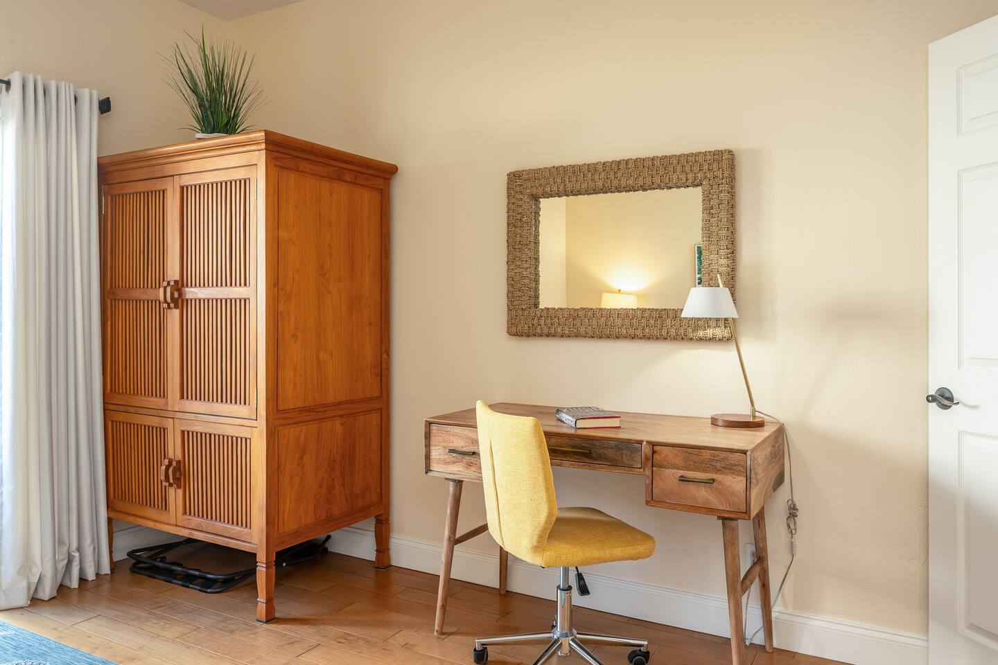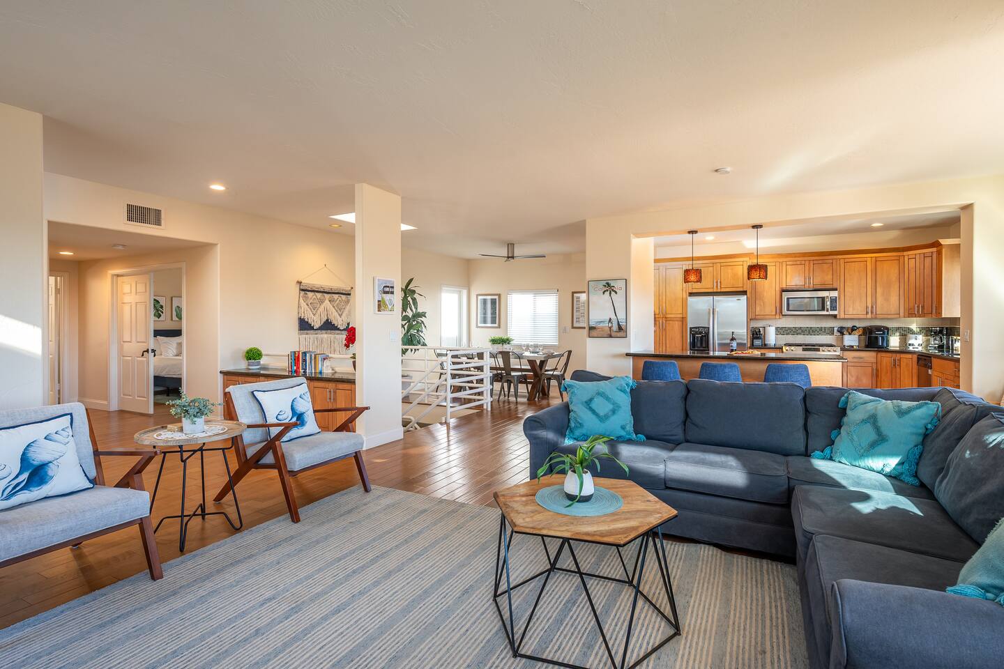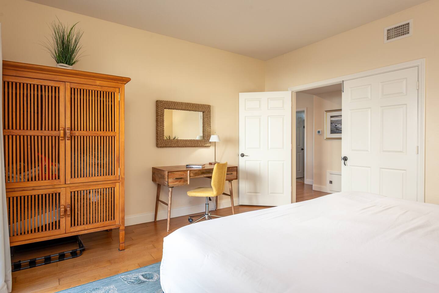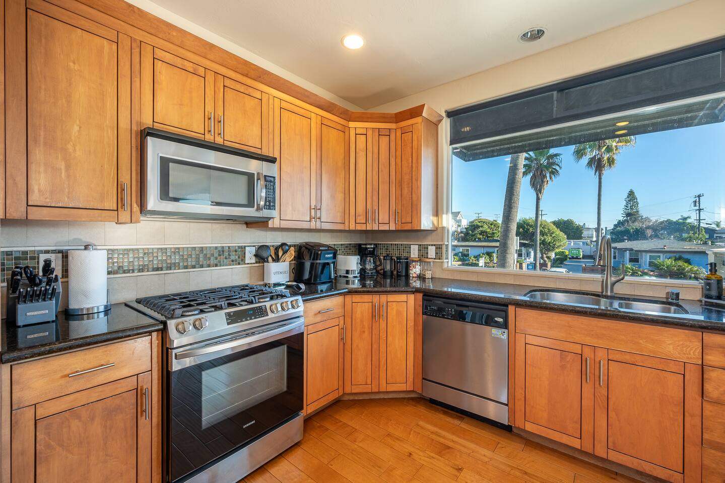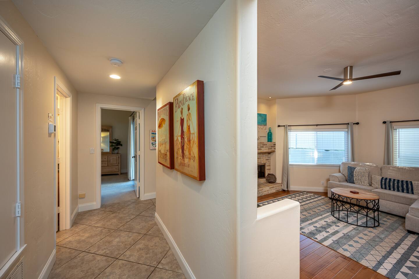 KEY FEATURES: ☀️ Prime Location – Just steps from the beach, perfect for enjoying sun, surf, and ocean breezes ☀️ Sleeps 8 | 4 Bedrooms: Master Bedroom with king bed, ensuite spa-style bathroom; Bedroom 2 king bed with private patio; Bedroom 3 queen bed; Bedroom 4 two twin beds ☀️ 3 Full Bathrooms – Master ensuite: double sinks, jacuzzi spa tub, walk-in shower; hallway full bathroom: tub/shower combo; main-floor full bathroom: tub/shower combo ☀️ Fully Equipped Kitchen – Full kitchen with bar seating for 3, coffee maker (coffee, creamer, sugar provided), blender, air fryer, toaster, stove, microwave, refrigerator, oven, dishwasher, and all cooking essentials ☀️ Dining Areas – Second-floor dining table seats 8 ☀️ Multiple Living Spaces – Second-floor living room with L-shaped sofa, fireplace, and Smart TV with soundbar; First-floor living room with large sofa, fireplace, mini-fridge, flat-screen Smart TV, and board games for added entertainment ☀️ Central A/C & Heating — for year-round comfort ☀️ Washer & Dryer — In-unit laundry for your convenience ☀️ Family Friendly – Beach towels, toys, wagon, boogie boards, chairs, and drying rack provided ☀️ Backyard Patio – Features a jacuzzi tub, chairs for relaxing and unwinding ☀️ Upstairs Deck– Equipped with a grill, large L-shaped sofa, dining table for 6, and umbrella for shaded outdoor dining ☀️ Parking – 4 driveway spaces + additional street parking ✨ BEDROOMS ✨ This two-level home comfortably sleeps up to 8 guests in 4 thoughtfully designed bedrooms: Master Bedroom (Upstairs) features a king-size bed, dresser, large closet, standing fan, and an ensuite bathroom with double sinks, a jacuzzi spa tub, and a walk-in shower, Bedroom 2 features a king-size bed, a small patio, a cabinet, and a desk with a chair ideal for remote work or leisure, Bedroom 3 (First Floor) features a queen bed and a closet, Bedroom 4 features two twin beds and a closet ✨ BATHROOMS ✨ There are three full bathrooms throughout the home. The ensuite bathroom features a jacuzzi tub and standing shower, Bathroom 2 includes a shower/tub combo, and Bathroom 3 on the first floor also has a shower/tub combo, easily accessible from the living areas. Fresh towels and complimentary toiletries are provided for your convenience. ✨ KITCHEN & LIVING AREA ✨ Enjoy a fully equipped kitchen with bar seating for 3, stocked with all your cooking essentials, including a coffee maker (with coffee, creamer, and sugar provided), blender, toaster, dishwasher, and more. You’ll enjoy two separate living areas: The Living Room (First Floor) features a large sofa, fireplace, mini fridge, a flat-screen Smart TV, and a variety of board games for added entertainment, while the Living Room (Second Floor) features a large L-shaped sofa, Smart TV with soundbar, fireplace, and standing fan. ✨ OUTSIDE SPACE ✨ Wake up to breathtaking sunrises and enjoy your morning coffee from the Upstairs Deck, which features a grill, large L-shaped sofa, dining table for 6, and an umbrella for shaded outdoor dining, or relax in the Backyard Patio, which includes a jacuzzi tub, chairs for unwinding and hanging out.