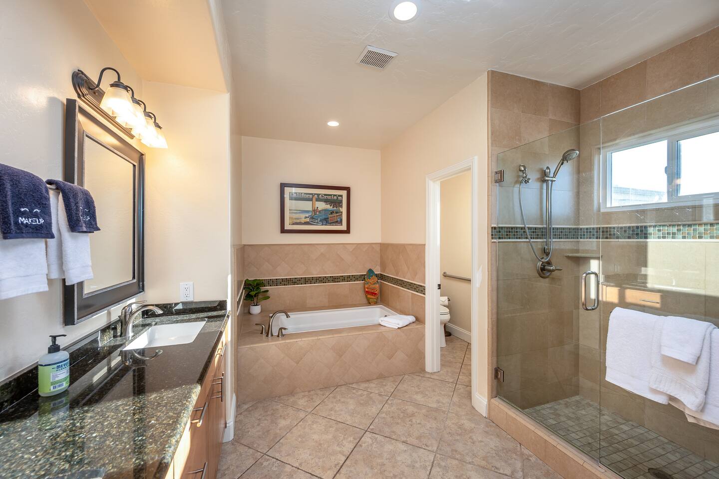 Welcome to seaside luxury! This serene Carlsbad retreat perfectly blends coastal charm with modern comfort. Ideal for family vacations or group getaways, this stylish home is just a short stroll to the beach. Enjoy a private backyard with a soothing hot tub and space to relax, reconnect, and make lasting memories. 2–3 min walk to Carlsbad State Beach 7 min drive to Legoland 20 min to Del Mar Fairgrounds & Racetrack 35–40 min to San Diego attractions