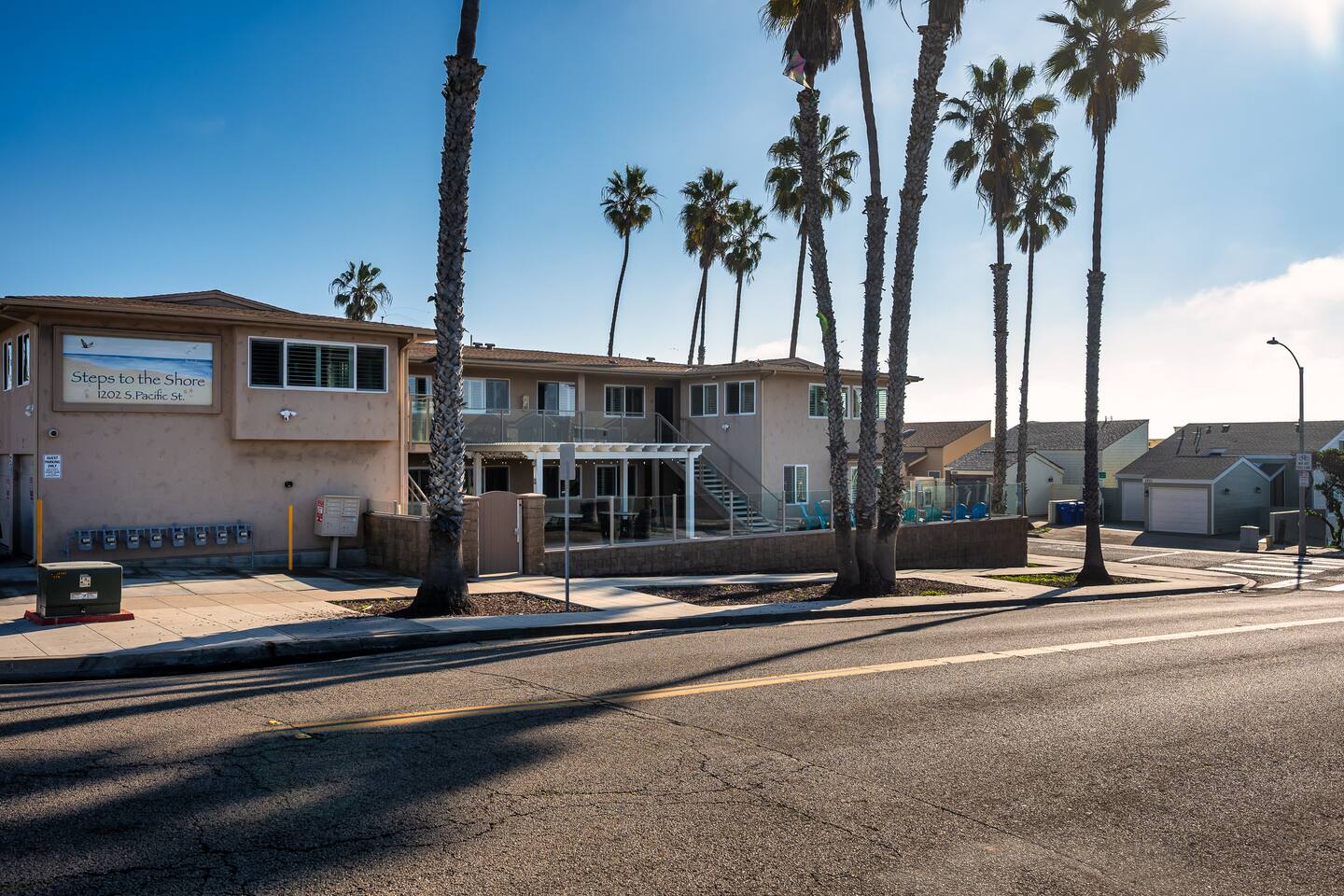 Welcome to Steps to the Shore, a boutique seven unit coastal property just steps from the beach in Oceanside. This full‑property rental includes all seven private apartments, offering 11 bedrooms, 20 beds, and 8 bathrooms, plus a spacious shared courtyard designed for gathering. Ideal for corporate retreats, family reunions, and group getaways seeking privacy, flexibility, and a walkable beach location. The building sits on a corner lot near the ocean, so some road noise should be expected.