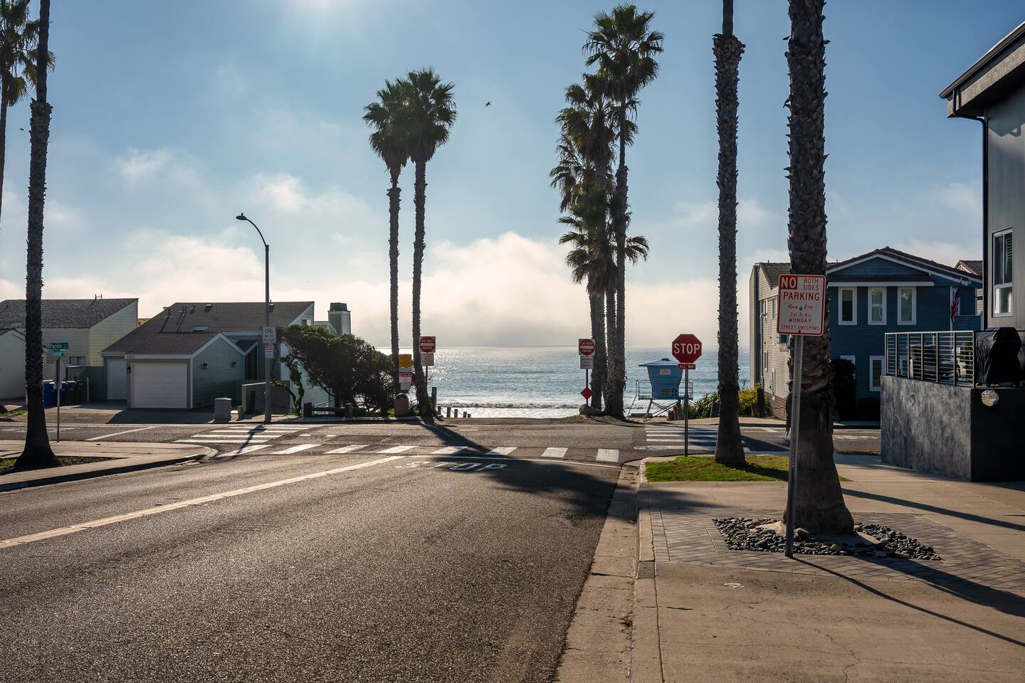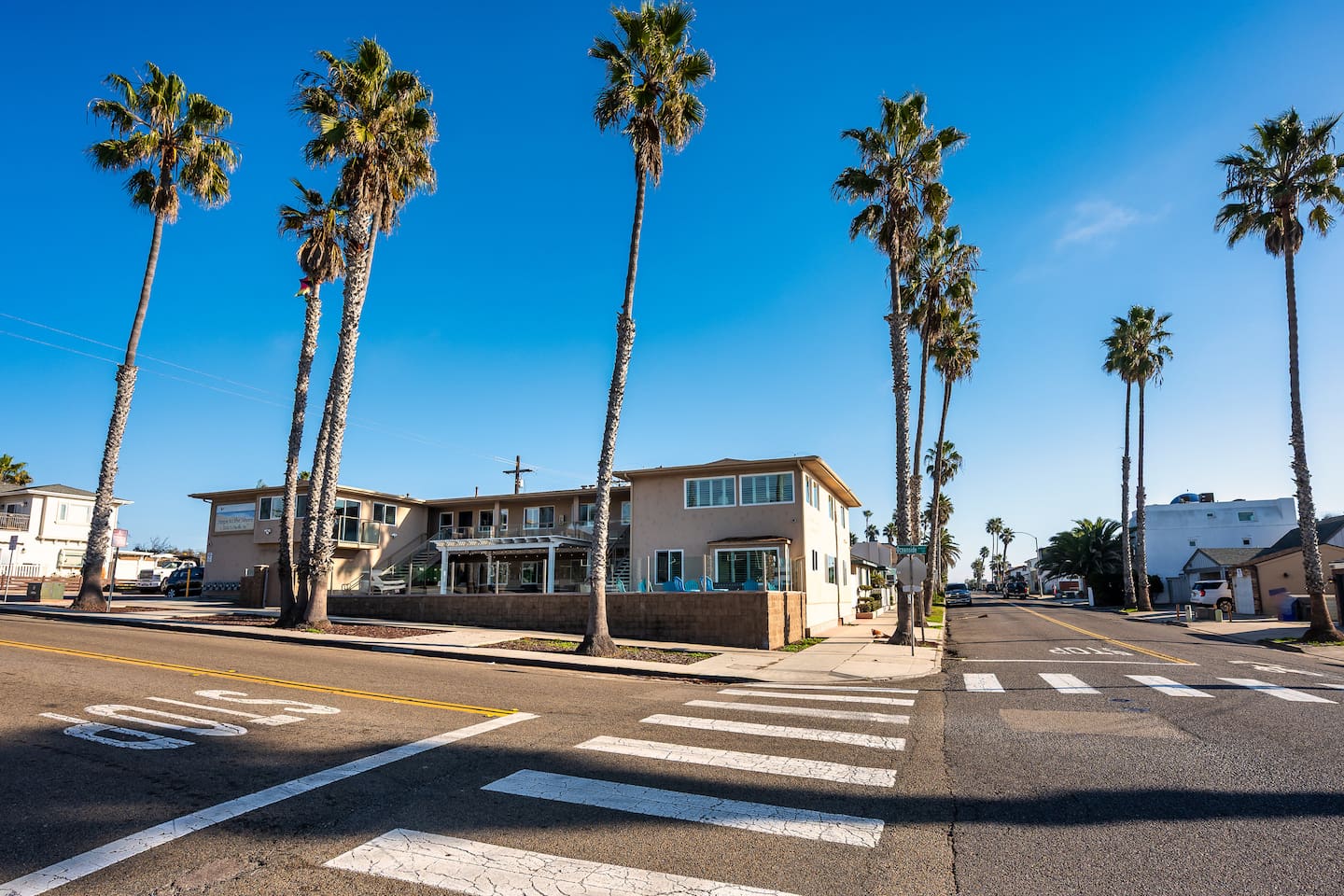 Welcome to Steps to the Shore, a boutique seven unit coastal property just steps from the beach in Oceanside. Unit 3 is a bright bottom floor 1BR with step free access, king bedroom, sleeper sofa, and full kitchen. Enjoy an 8 min walk to Buccaneer Beach, very quick drives to restaurants and coffee shops, and easy access to Carlsbad Village and Legoland. This corner lot building sits along two busy streets, so some road noise should be expected. Includes a compact garage space plus a tandem spot.