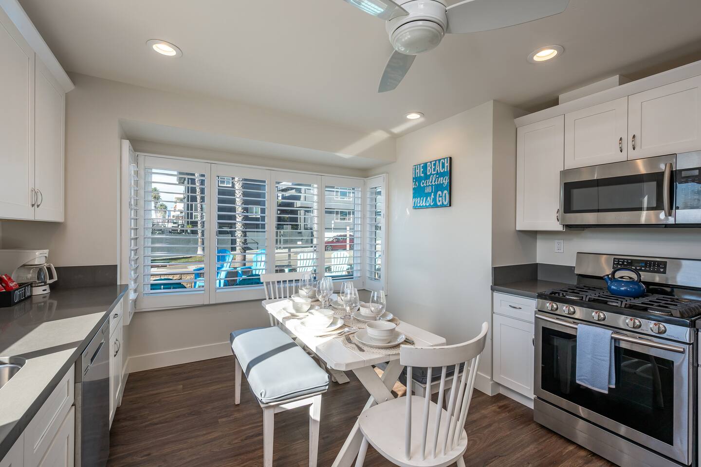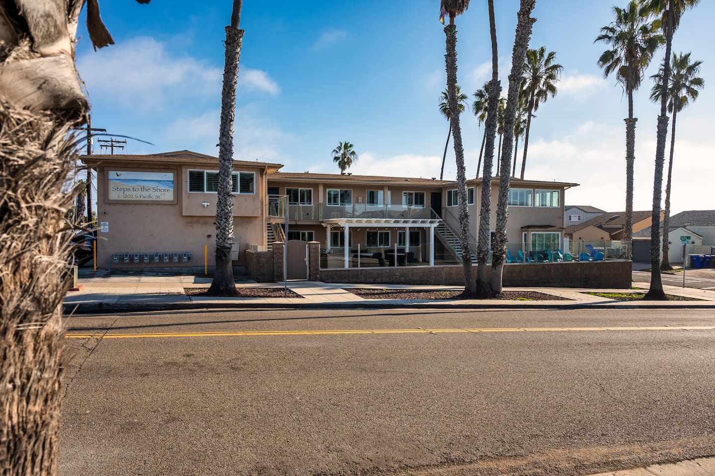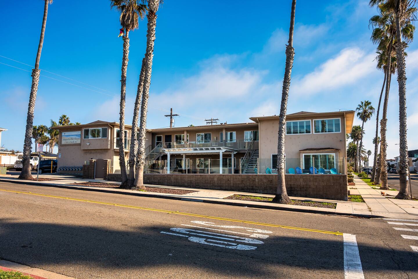 Welcome to Steps to the Shore, a boutique seven unit coastal property just steps from the beach in Oceanside. Unit 1 is a bright bottom floor 2BR with partial ocean views, step free access, and comfortable spaces ideal for families and small groups. Enjoy an 8 minute walk to Buccaneer Beach, very quick drives to local restaurants and coffee shops, and easy access to Carlsbad Village and Legoland. This corner lot building sits along two busy streets, so some road noise should be expected.