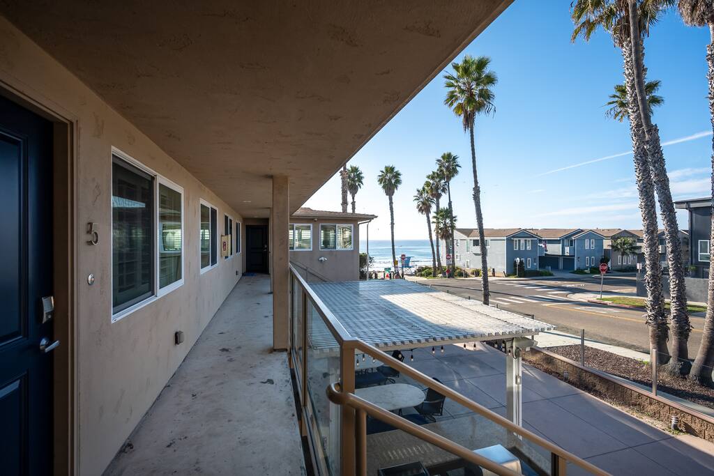 Welcome to Steps to the Shore, a boutique seven unit coastal property just steps from the beach in Oceanside. Unit 5 is a bright top floor 1BR with a king bedroom, sleeper sofa, full kitchen, and central A/C. Enjoy an 8 minute walk to Buccaneer Beach, very quick drives to restaurants and coffee shops, and easy access to Carlsbad Village and Legoland. This corner lot building sits along two busy streets, so some road noise should be expected. Includes compact garage plus tandem parking.