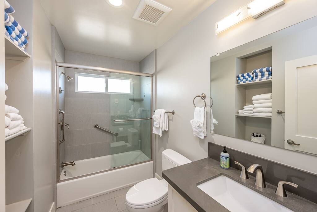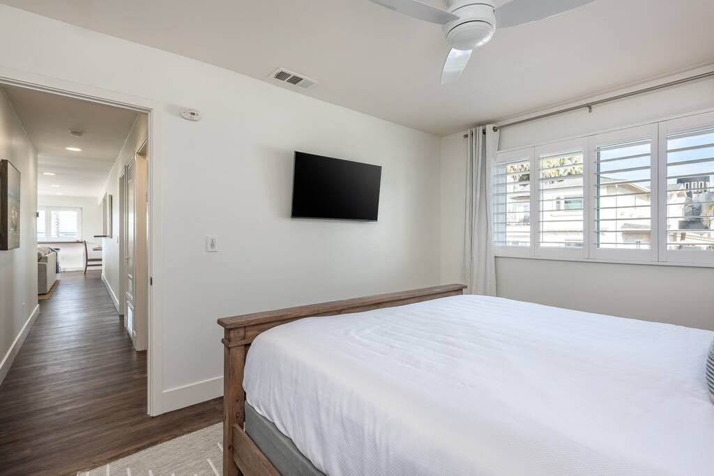 Welcome to Steps to the Shore, a boutique seven unit coastal property just steps from the beach in Oceanside. Unit 4 is a spacious top floor 3BR with partial ocean views from the living area and kitchen, plus a private balcony with sunset visibility. Ideal for families and groups with an open layout and large primary suite. Enjoy an 8 minute walk to Buccaneer Beach and quick drives to dining, Carlsbad Village, and Legoland. Road noise should be expected due to the corner lot location.