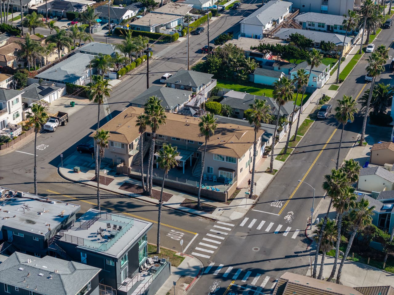 Welcome to Steps to the Shore, a boutique seven unit coastal property just steps from the beach in Oceanside. Unit 7 is the building’s premium top floor 2BR, offering partial ocean views from the living room and both bedrooms, with excellent sunset visibility. Stylish finishes include sea turtle feature walls. Enjoy an 8 minute walk to Buccaneer Beach and quick drives to dining, Carlsbad Village, and Legoland. Road noise should be expected due to the corner lot location.